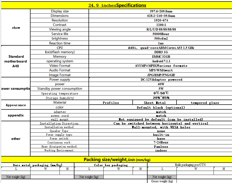 24.9 inchesSpecifications